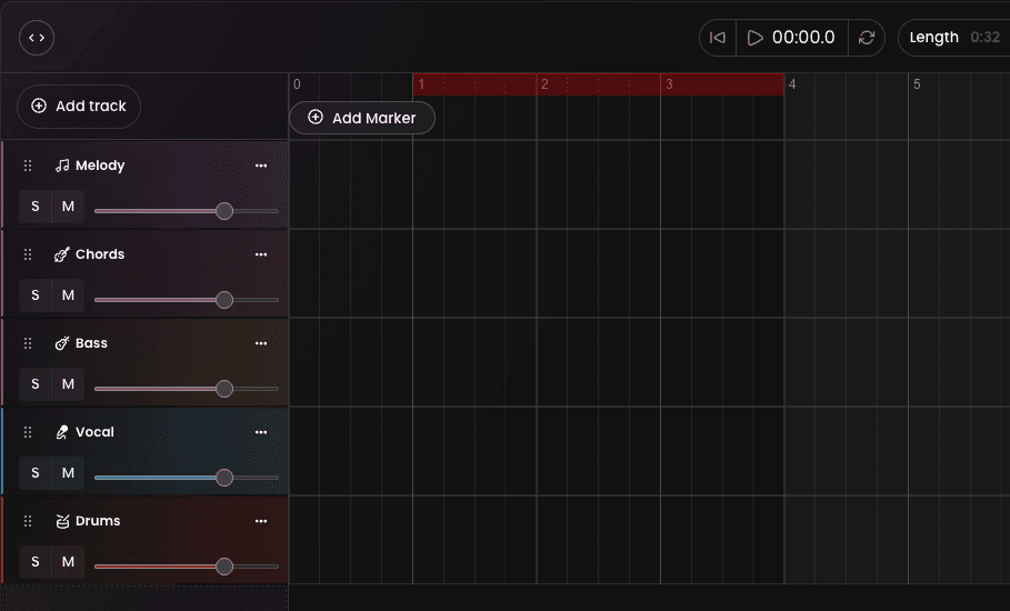 Grid-based View: See all your instrument stems laid out along a musical timeline.