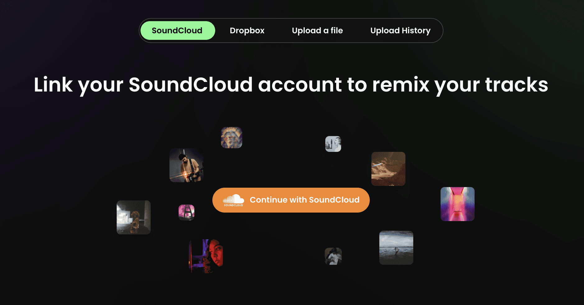 Through a unique partnership with SoundCloud, you can connect your SoundCloud account to your Tuney account and select any track you have published (or uploaded privately) to your SoundCloud page. Simply click "Connect with SoundCloud" and accept. You will see your SoundCloud tracks listed inside the Tuney app after connecting your account and can select any one of them to get started.
