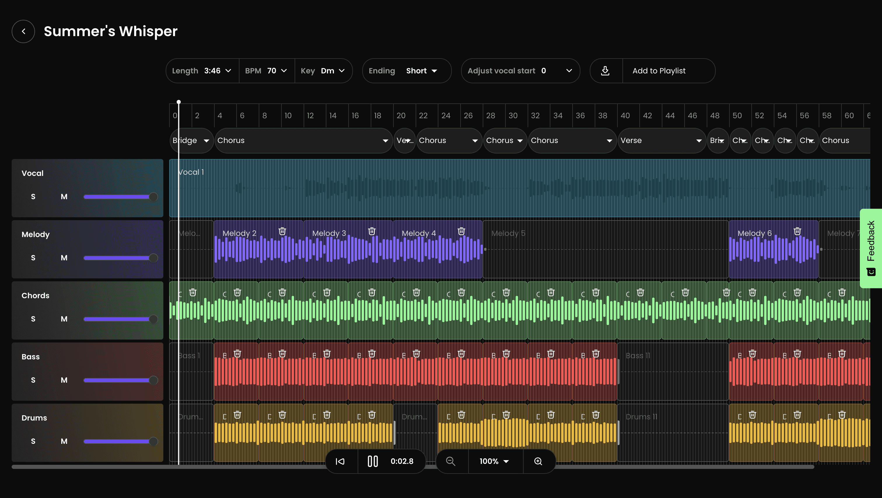 You can also adjust the volume of individual instruments and the vocal to make it sound how you want it.