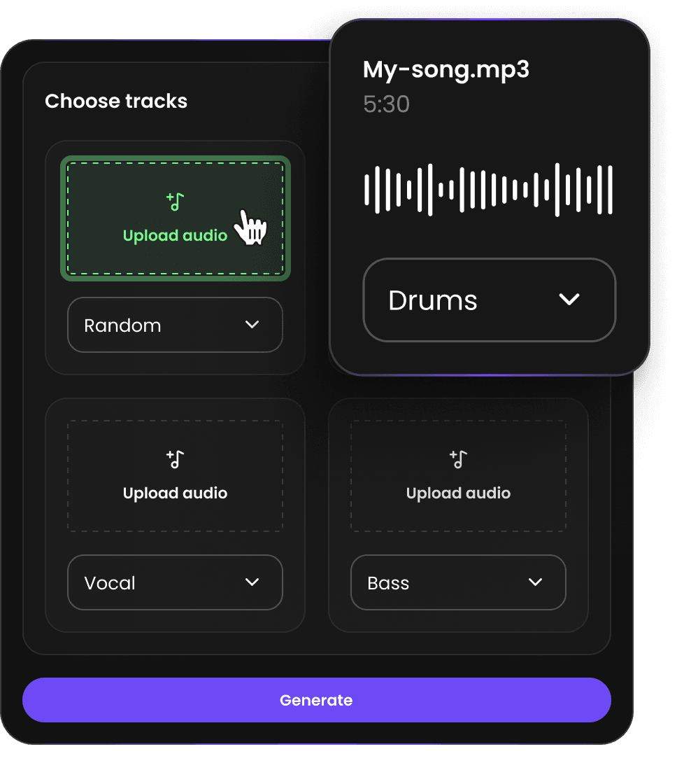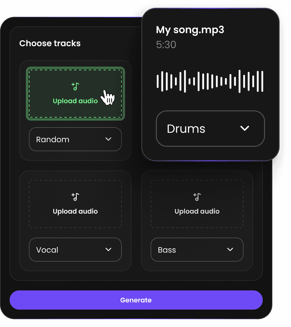 While AI music apps use your uploaded audio as a reference to generate something totally new, Tuney’s mashup feature takes actual stems and samples from your uploaded tracks to create the resulting mashup.